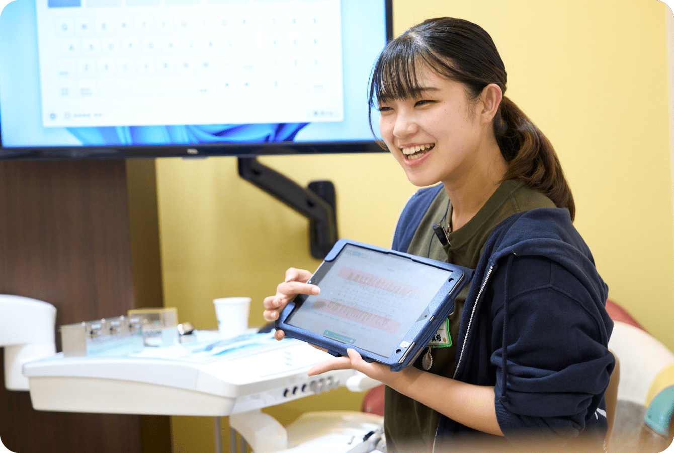 マウスピース矯正・ホワイトニング、自費予防プログラムなど幅広い診療経験が積める環境です。