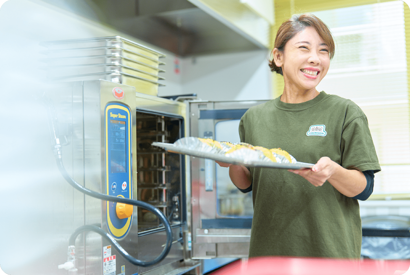 スタッフ向けランチの調理や配達をはじめ、食育イベントで患者さまと一緒に料理を作ったりクイズを出したりなどの業務を行っています。